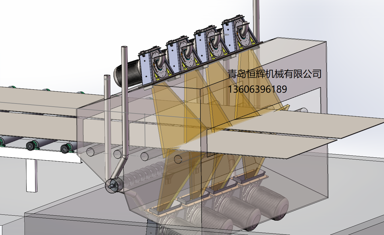 板鏈輸送系統(tǒng)采用4道板鏈傳動,解決了以前板鏈跑偏、故障率高的問題。